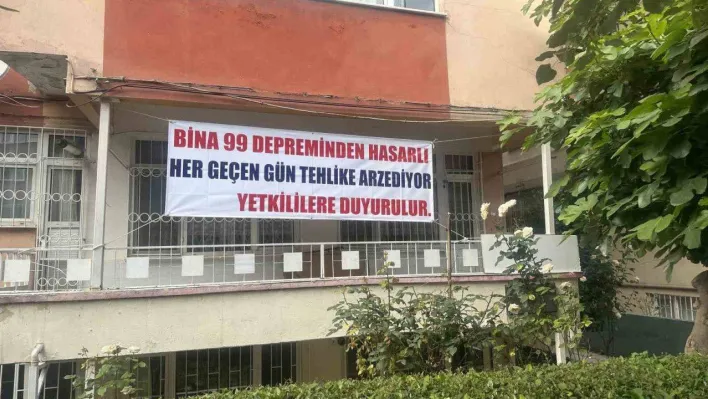 Bakırköy'de 1999 yılında hasar alan ve sonrasında bina sakinleri tarafından tahta parçalarıyla güçlendirilmeye çalışılan bir daire sahibi duruma isyan ederek binaya 'Bu bina 1999 depreminden hasarlı her geçen gün tehlike arz ediyor yetkililere duyurulur' şeklinde pankart astı.