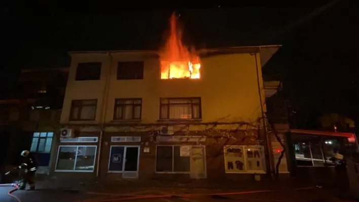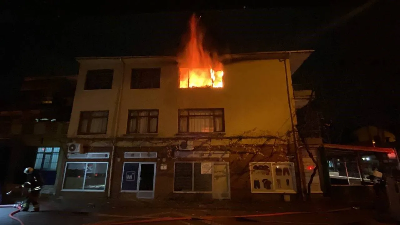Kocaeli'nin İzmit ilçesinde bir binanın 3. katı alev alev yandı. Sokağa çıkan vatandaşlar itfaiye ekiplerinin söndürme çalışmalarını film seyreder gibi izledi.