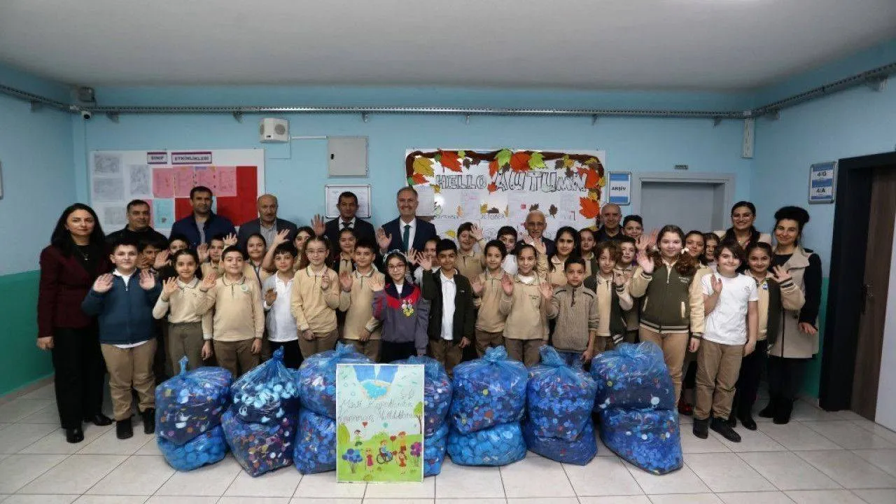 Belediye Başkanı Alper Taban, öğrencilerin bu başarılı çalışması sonrası bugün Hacer Salih Yıldız İlkokulunu ziyaret etti. Burada mavi kapak toplama serüvenlerini anlatan öğrenci Fatma Dilruba Karataş, “Arkadaşlarımla, babalarımızın iş yerlerinden, komşularımızdan, tanıdıklarımızdan birlik beraberlik içerisinde kapakları topladık. İnşallah özel gereksinimli arkadaşlarımıza umut olmuş oluruz” dedi.