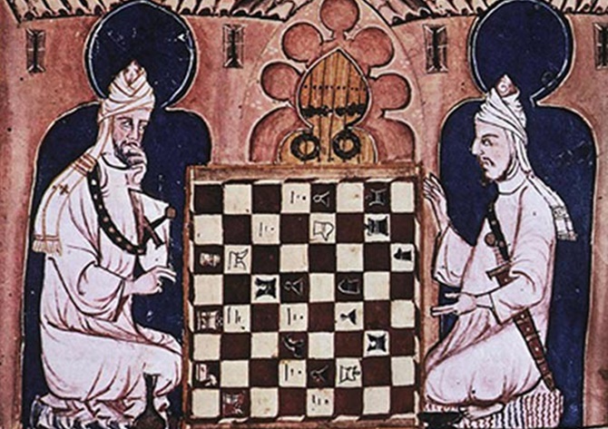 Satranç Batı’ya Arapların aracılığıyla IX. yüzyılda geçmiştir. Bunu belgeleyen en güzel örnek de, Harun-ül-Reşit’in Charlemange’a hediye ettiği satranç takımıdır. Eski satrancı, günümüzün satrancından ayıran özellikler şunlardır: