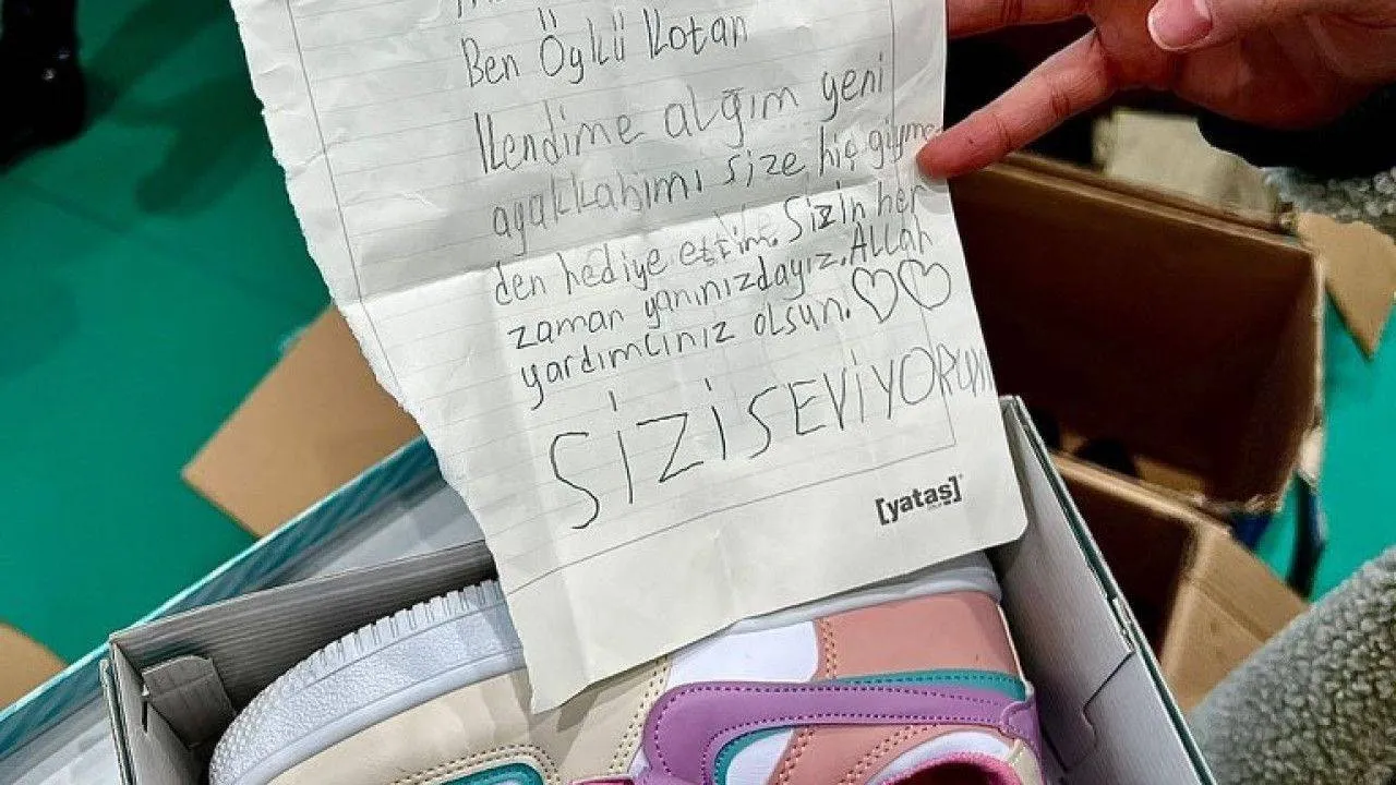 Kocaeli Büyükşehir Belediyesinin Kahramanmaraş merkezli depremlerin ardından afetzedeler için başlattığı yardım kampanyasına, 7’den 70’e tüm vatandaşlar ilgi gösteriyor. Kampanyaya destek olan Elfida isimli kız çocuğu, tablet almak için harçlıklarını biriktirdiği kumbarasını yardım toplama merkezine getirdi. İsminin Öykü olduğu öğrenilen bir başka çocuk ise hiç giymediği spor ayakkabısını, "Merhaba ben Öykü. Kendime aldığım yeni ayakkabıyı size hiç giymeden hediye ettim. Sizin her zaman yanınızdayım. Allah yardımcınız olsun. Sizi seviyorum" notuyla bağışladı.