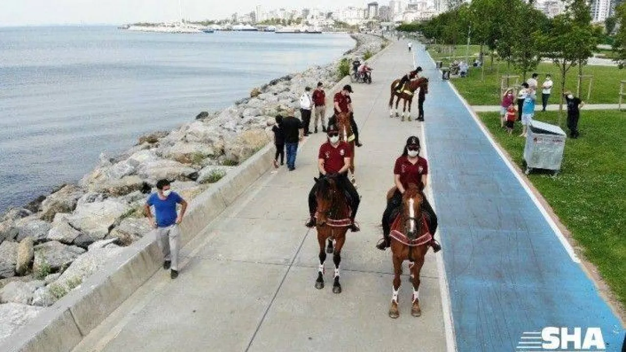 Vatandaşlar tarafından büyük ilgiyle karşılaşan atlı polis ekipleri, yaşanabilecek olumsuzluklara karşı devriye gezdi. Sahilde 4 kişilik gruplar halinde gezen ekipler korona virüs tedbirleri kapsamında vatandaşları sosyal mesafe konusunda uyardı. Ekipler sahilde devriye attığı esnada maske takmayan vatandaşları uyarıp kurallara uymaları noktasında ikaz etti.