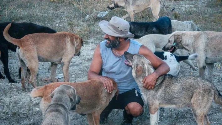 Bursa'da bir hayvanseverin beslediği yüzlerce köpek etrafını sarıp ona sevgi gösterisinde bulunuyor.