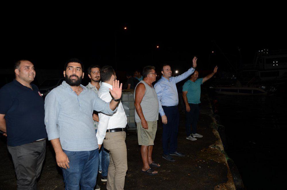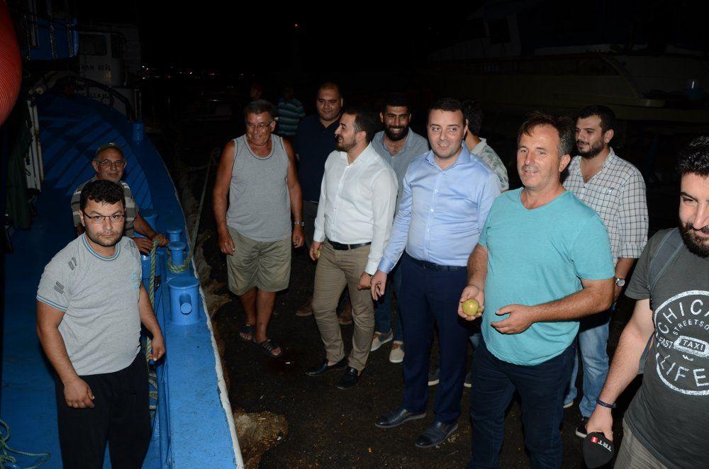 Son hazırlıklarını tamamlayarak balık avına çıkmaya hazırlanan ticari balıkçılarla bir süre sohbet eden AK Parti Silivri ilçe Başkanı Mutlu Bozoğlu, saat 23:59 da balıkçı teknesinde teşkilat mensupları ve balıkçılarla birlikte nar patlatarak sezonun bolluk ve bereketli geçmesini dileyerek balıkçıları Marmara denizine uğurladı.