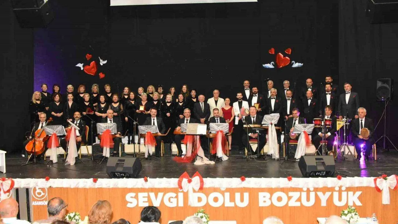 Bozüyük Belediyesi Metristepe Kültür Merkezi’nde gerçekleştirilen konser programında koro şefi Murat Küçük yönetimindeki koro, Mete Ayaz’ın sunumu eşliğinde Türk Sanat Müziğinin sevilen Aşk Şarkılarını seslendirdi. Konser programında solo ve koro olarak 1. bölümde sevilen 11 eser seslendirilirken 2.bölümde ise 10 eser seslendirildi. Dinleyenlerin kulaklarının pasının silindiği muhteşem konser programında salon tamamen dolarken katılımcılar unutulmaz bir müzik şöleni yaşadı. Konser programının bitiminde Bozüyük Belediye Başkanı Mehmet Talat Bakkalcıoğlu sahneye gelerek Türk Sanat Müziği Korosu çalışmalarına yıllarca emek veren koro üyelerine Vefa Plaketi takdim etti. Ardından seyircilere hitap eden Başkan Bakkalcıoğlu “Ne güzel bir konser izledik değil mi? Ben sadece bunun oluşması için Belediye Başkanı olarak vesile oluyorum. Ama bu güzel konserleri en başta Murat kardeşimin öncülüğünde koristlerimiz her biri çok değerli profesyonel bir ortam oluştu. Bu çok kıymetli, bu çok güzel. Bizim elimizden geldiğince her an her aşamada desteği vereceğiz. Murat bana geçen gün çok güzel bir proje sundu, şimdi o sürpriz hemen bir şey söylemeyeceğim. Ama bu sene neyin 100. yılı arkadaşlar? Cumhuriyetin, artık bu kadar söyleyeyim ben, gerisini hep birlikte izleyeceğiz” dedi.