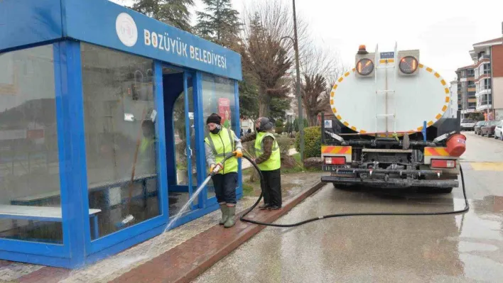 Temiz ve sağlıklı bir çevre hedefiyle çalışmalarını itina ile sürdüren Bozüyük Belediyesi Temizlik İşleri Müdürlüğü ekipleri ilçe genelinde sürdürdüğü temizlik çalışmaları ile kapalı ve açık durakların camlarını da iç ve dış cepheleri olmak üzere yıkayarak temizliyor. Ayrıca cadde ve sokaklardaki çöp toplama, sokak süpürme ve mıntıka temizliği çalışmaları da kesintisiz olarak devam ediyor.