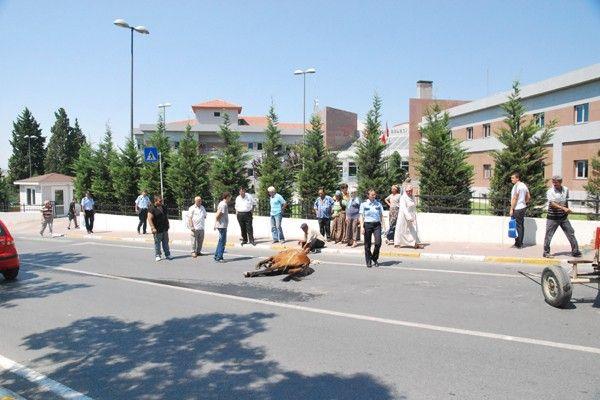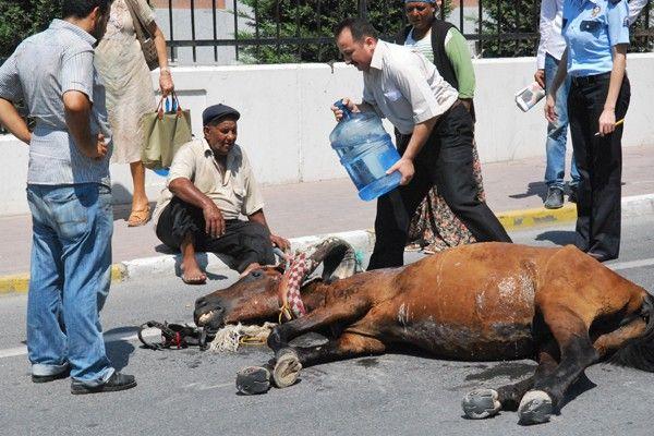 Silivri’de dün hem ilginç hem de bir o kadar içler acıtan olay meydana geldi. Kavurucu sıcağın kendisini en yoğun bir biçimde hissettirdiği öğlen saatlerinde, Silivri Belediyesi önünde bir vatandaşa ait at arabası devrildi. Sıcağın ve susuzluğun vermiş olduğu bitkinliğe daha fazla dayanamayan at, birde açlığın eklenmesi belediye önünde kendini yere bıraktı.