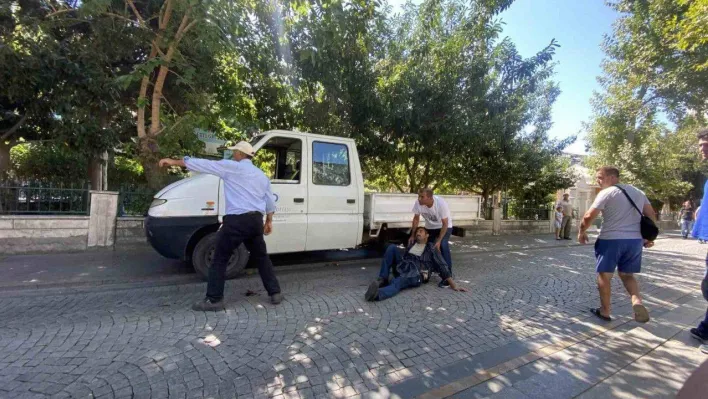 Tekirdağ Çorlu’da cami avlusunda budamak için çıkığı ağaçta dengesini kaybederek düşen belediye işçisinin bacağına demir çubuk saplandı.