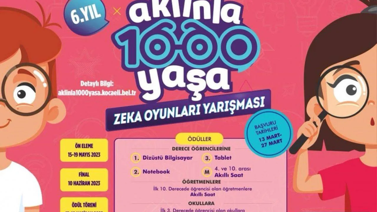 Kocaeli Büyükşehir Belediyesi, "Aklınla 1000 Yaşa" zeka oyunları yarışmasını 6’ncı kez düzenliyor. İl Milli Eğitim Müdürlüğü ile ortaklaşa yapılacak yarışmaya Kocaeli’de resmi ve özel eğitim kurumlarının 4. sınıf öğrencileri katılabilecek. Ödüllü zeka oyunları yarışmasında, öğrencilerin gelişimine katkıda bulunarak analitik düşünme becerilerini artırmak, eğitsel etkinliklerle buluşma fırsatı sağlamak ve öğrencilerin çoklu zeka yeteneklerini geliştirmesi hedefleniyor. Bu yıl altıncısı düzenlenecek olan yarışmaya bugüne kadar 78 bin 21 öğrenci katılım sağladı. Yarışmaya katılacak öğrencilerin en geç 27 Mart tarihine kadar internetten başvuru yapması gerekiyor.
