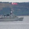 Bulgar savaş gemisine boğaz geçişi sırasında, Türk Sahil Güvenlik Botu refakat etti.