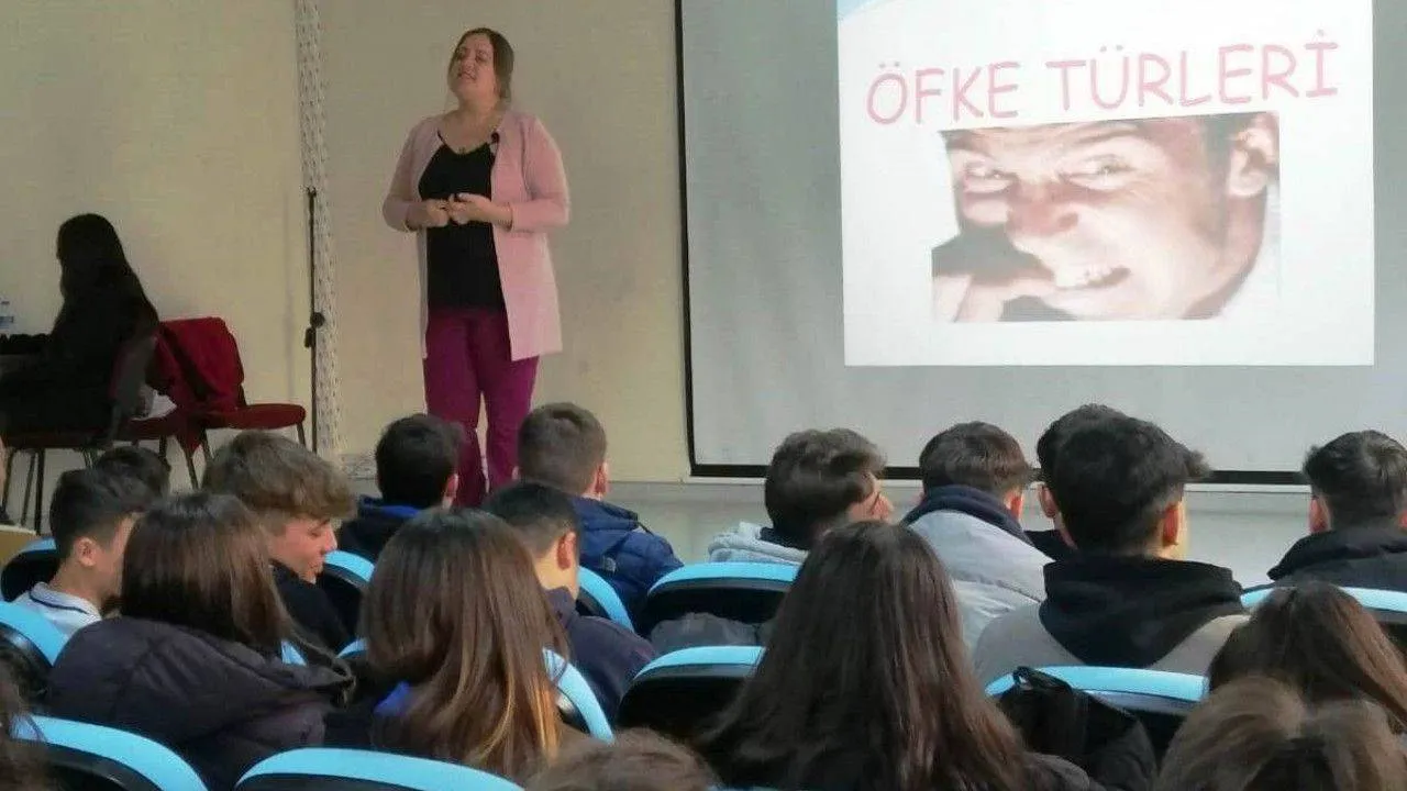 Başarıyı İzleme ve Geliştirme Projesi (BİGEP) dahilinde “Akran Zorbalığı ve Öfke Kontrolü” konulu seminerde Burhaniye Belediyesi Sosyal Yardım İşleri Müdürlüğünde görevli Sosyolog Deniz Akcan Orcan, gençler arasında fiziksel ve duygusal olarak artan şiddet eğilimleri ve bunun çözümleri ile ilgili öğrencilerle sohbet etti.