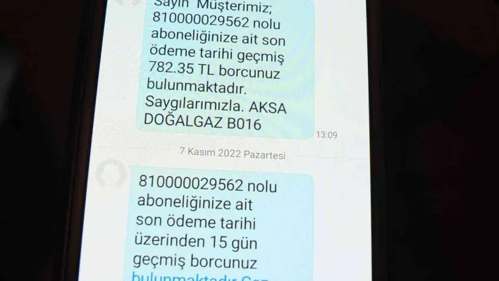 İlçenin Ören Mahallesi Eczacı Rasim Caddesi 2031. Sokak’ta oturan Ali Talay’a ait eve gazdan önce fatura geldi. Gaz için yaklaşık 4 ay önce başvurduğunu anlatan 45 yaşındaki Ali Talay, “Tüm evrakları tamamlayıp vermeme rağmen bu güne kadar gaz bağlanmadı. Sorduğumuzda sistemde bir hata olduğunu, kısa zamanda bağlanacağını söylediler. Geçtiğimiz günlerde telefonuma ’782.35 lira gecikmiş borcunuz var’ diye mesaj gelince şaşırdım. Gelen ikinci mesajda ise borcumuz ödenmediği için gaz kesme ihbarnamesi hazırlandığı yazıyordu. Biz 4 aydır gaz bağlanacak diye beklerken böyle bir sürprizle karşılaştık. İnşallah, bu düzeltilir ve en kısa zamanda da gazımız bağlanır diye bekliyorum” dedi.