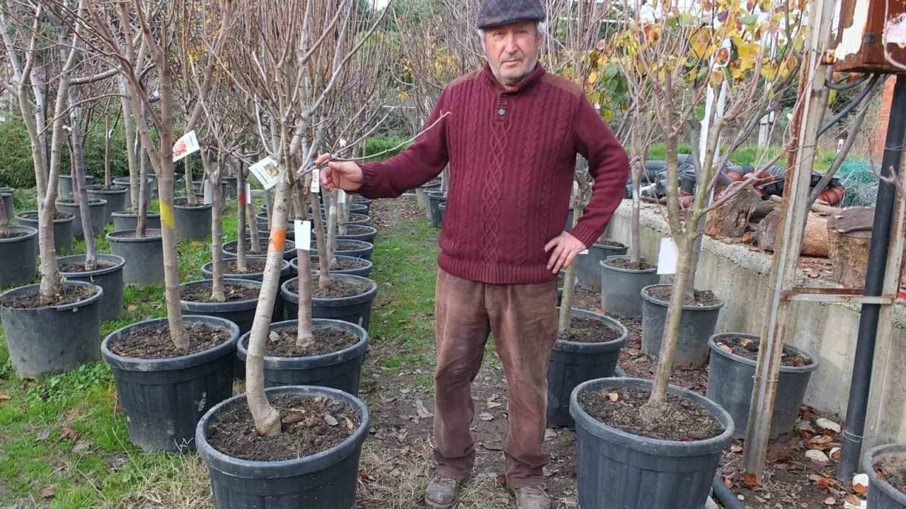 Burhaniye’de, ürettiği fıstıkçamı fidanları ile adını duyuran emekli bankacı Yunus Göç, fıstıkçamlarından sonra meyve fidanlarını da saksılara dikti. Dev saksılardaki meyve fidanlarının ilgi gördüğünü anlatan Yunus Göç, “Bu güne kadar fıstıkçamı fidanlarını saksılarda satışa sunduk. Şimdi de kayısıdan kiraza ve elmaya kadar değişik meyve fidanlarını saksılara diktik. Böyle olunca bu ağaçları her mevsim dikmek mümkün. Dikildiği yıl da meyve veriyor. Saksıdaki meyve ağaçları ilgi gördü” dedi.
