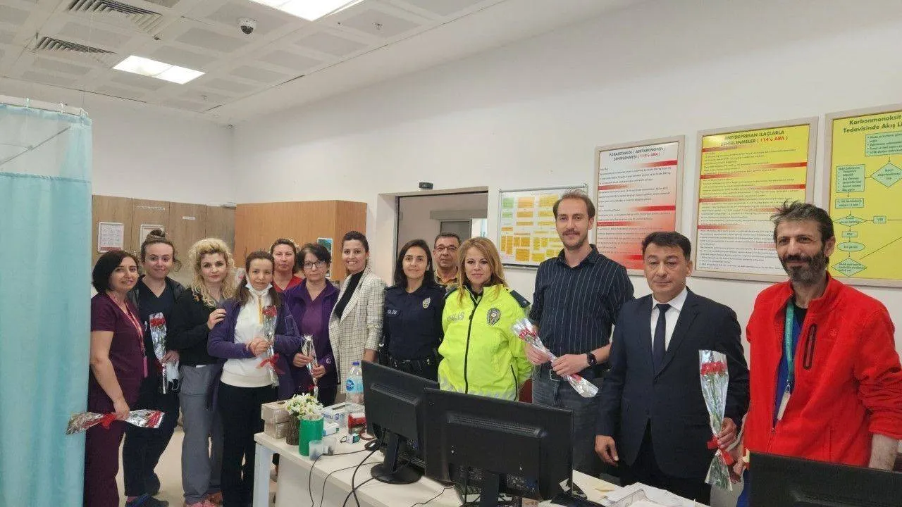 Balıkesir’in Burhaniye ilçesinde14 Mart Tıp Bayramı, çeşitli etkinliklerle kutlanırken, Burhaniye Emniyet Müdürlüğü personeli de sağlık görevlilerini yalnız bırakmadı. İlçe Emniyet Müdürü Metin Kartal’ın başkanlığındaki 6 kişilik heyet önce Devlet Hastanesi Başhekimi Dr. Evren Akgöl’ü ziyaret ederken, görevlilere çiçek takdim etti.