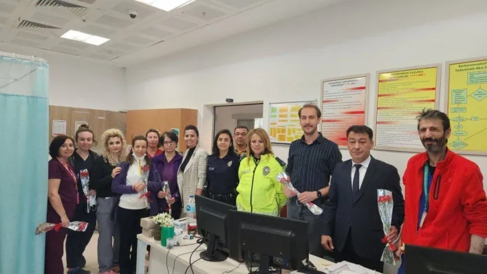 Balıkesir'in Burhaniye ilçesinde14 Mart Tıp Bayramı, çeşitli etkinliklerle kutlanırken, Burhaniye Emniyet Müdürlüğü personeli de sağlık görevlilerini yalnız bırakmadı. İlçe Emniyet Müdürü Metin Kartal'ın başkanlığındaki 6 kişilik heyet önce Devlet Hastanesi Başhekimi Dr. Evren Akgöl'ü ziyaret ederken, görevlilere çiçek takdim etti.