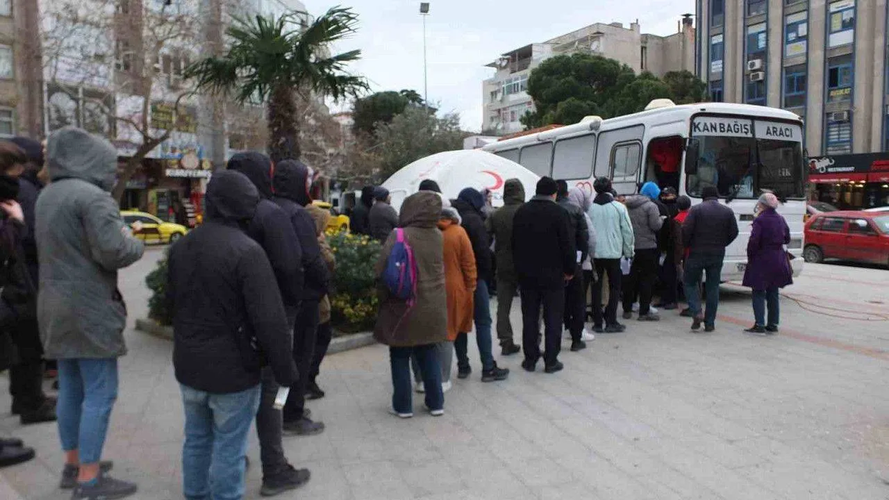 Burhaniye'de Balıkesir Kızılay Kan Merkezi'nin depremzedeler için düzenlediği kan bağışı kampanyası büyük ilgi gördü. Çok sayıda vatandaş, Cumhuriyet Meydanında konuşlanan bağış otobüsünün önünde kuyruk oluşturdu.