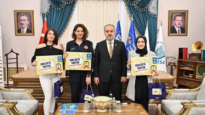 Bursa'nın daha yaşanılabilir bir şehir olması adına Türkiye'ye örnek olan projeleri bir bir hayata geçirerek vatandaşlarla buluşturan Büyükşehir Belediyesi, kurum için motivasyon çalışmalarını da sürdürüyor. Son 5 senede yapılan proje ve faaliyetlerin yer aldığı 'Birlikte Yaptık' bilgi yarışmasında soruları en kısada sürede cevaplayan personeller, Büyükşehir Belediye Başkanı Alinur Aktaş tarafından ödüllendirildi.