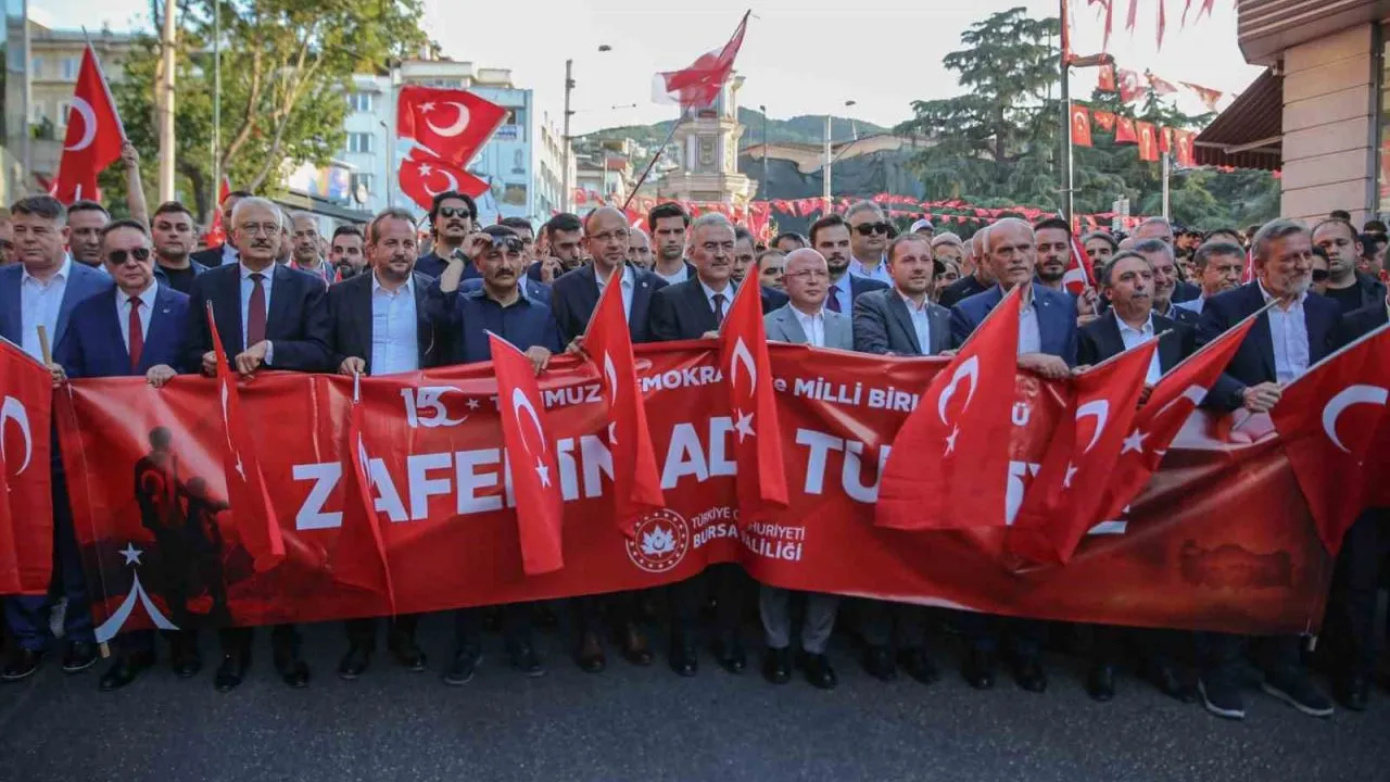 15 Temmuz Demokrasi ve Milli Birlik Günü etkinlikleri kapsamında Bursa Valiliği’nin koordinasyonunda demokrasi ve bayrak yürüyüşü düzenlendi. Atatürk Heykeli önünden başlayıp 15 Temmuz Demokrasi Meydanı’nda sona eren yürüyüşe, Vali Erol Ayyıldız ve Büyükşehir Belediye Başkanı Mustafa Bozbey başta olmak üzere Bursa milletvekilleri, ilçe belediye başkanları, şehit yakınları, siyasi parti temsilcileri, askeri erkan, sivil toplum kuruluşlarının temsilcileri ve çok sayıda vatandaş katıldı. Yürüyüşün ardından Demokrasi Meydanı’nda düzenlenen tören, saygı duruşu, İstiklal Marşı’nın okunması, Kuran’ı Kerim tilaveti ve protokol konuşmalarıyla devam etti.