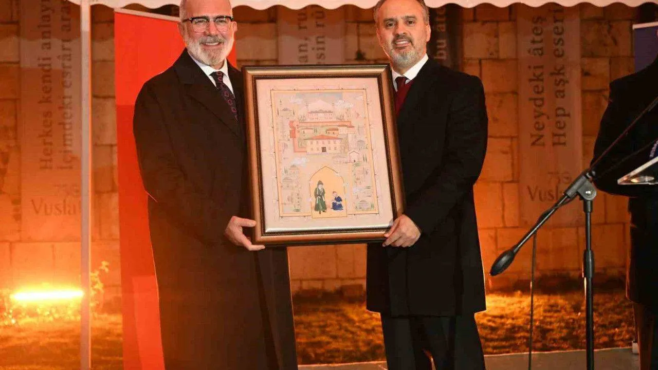Bursa Mevlevihanesi’nin küllerinden doğuşunun coşkusunu birkaç ay önce yaşadıklarını hatırlatan Büyükşehir Belediye Başkanı Alinur Aktaş, Bursa’nın zamanla değişime uğramasına rağmen hala kuruluş devrinin rengini, dokusunu, havasını ve manzarasını sokaklarında saklayan bir Türk şehri olduğunu söyledi. Gizli hazineleri görünür kılmanın, yıpranan yapıları tamir etmenin, yıkılanları tekrar ayağa kaldırmanın bir vefa borcu olduğunu belirten Başkan Aktaş, “Ecdada ve tarihe hürmet kapsamında yaptığımız birçok çalışma var. Bunların arasında beni en çok heyecanlandıran ise Bursa Mevlevihanesi’ni 98 yıl sonra tekrar ayağa kaldırmak oldu. Hamdolsun ki 400 yıl önce Cünûnî Ahmed Dede tarafından yakılan çerağın ışığı bugün de çevremizi tenvir ediyor. Kültür ve Turizm Bakanı Mehmet Nuri Ersoy’un katılımıyla Bursa Mevlevihanesi’nin küllerinden doğuşunun coşkusunu birkaç ay önce hep birlikte yaşadık” dedi.