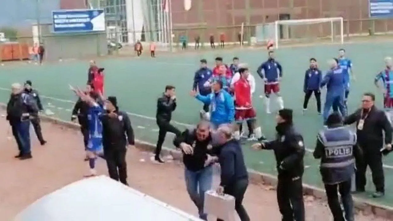 Bursa'nın Gürsu ilçesinde Yenidoğan Spor Kulübü ile İnegöl Karadeniz Güven Spor Kulübü arasında oynan Süper Amatör Lig maçında bir polis memuru ile bir futbolcu yaralandı.