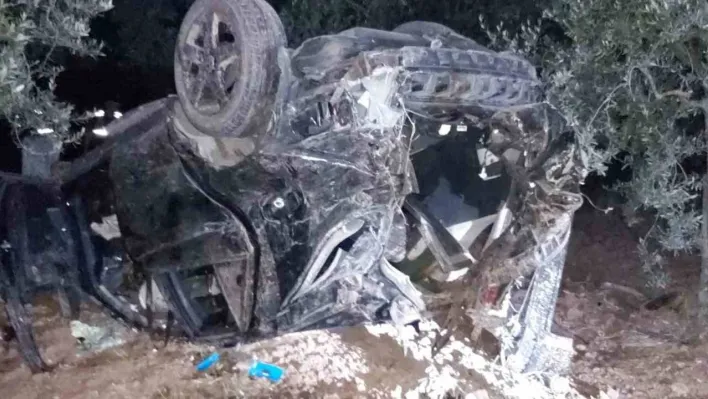 İngiliz vatandaşı sürücünün direksiyon hakimiyetini kaybetmesiyle zeytinlik içine giren araç 60 metre sürüklenip takla attı. Kazada sürüklenen otomobilin sürücüsü ağır yaralandı.