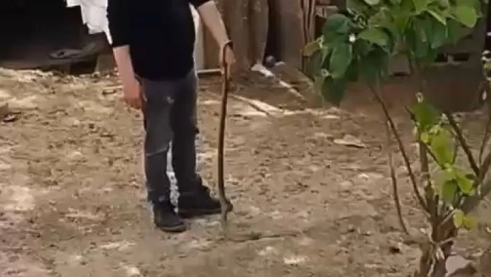 Bursa'da bahçesine giren yılanı elleriyle yakaladı
