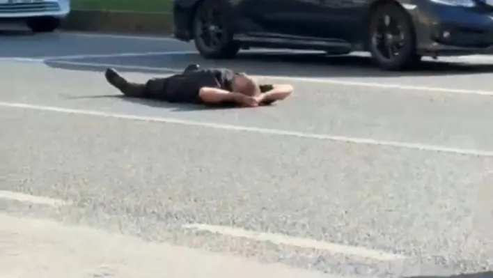 Bursa'nın Orhangazi ilçesinde sabah saatlerinde yaşanan ilginç olayda bir şahıs trafiğin yoğun olduğu ana yolun ortasına yattı. Sürücüler korna çalarak vatandaşı uyarsa da o rahatını hiç bozmadı.