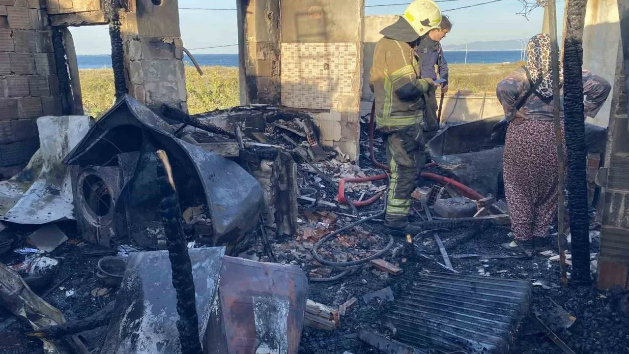 Bursa’nın Mudanya ilçesinde çıkan yangında bir ev küle dönerken, yanındaki bina da alevler ve söndürme esnasındaki su nedeniyle hasar gördü.