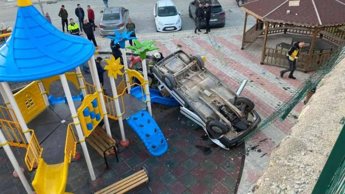 Bursa'nın Orhaneli ilçesinde bir otomobil bariyerlerden çocuk parkına uçtu. Kazada sürücü yaralanırken, parkta çocukların olmaması facianın önüne geçti.