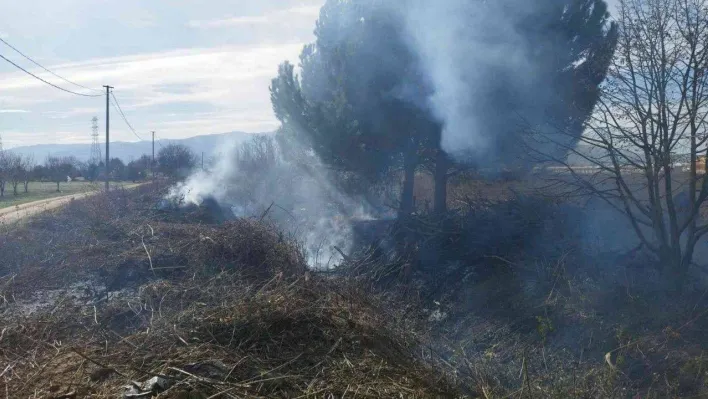 Bursa'nın Orhangazi ilçesinde daha önce kesimi yapan ağaçlar tutuştu.
