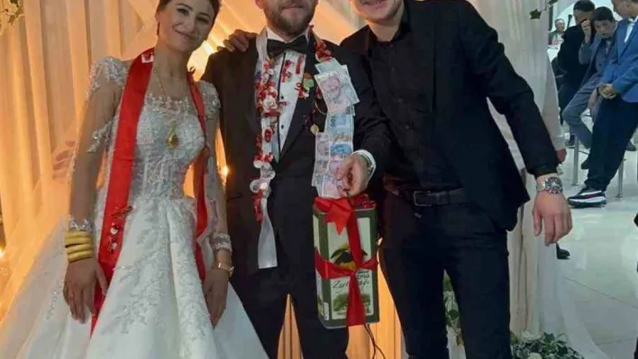 Bursa'nın İznik ilçesinde bir çiftin düğün merasiminde damada 5 litrelik teneke zeytinyağı takı olarak takıldı. Arkadaşların bu şakası damat ve gelini güldürdü.