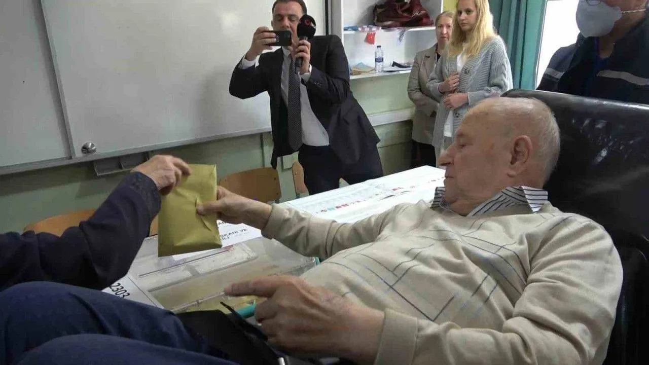 Bursa'da yatağa bağlı veya yürümekte zorluk çeken yaşlı vatandaşlar için ambulanslar seferber edildi. Sağlık görevlileri tarafından evden alınan vatandaşlar, ambulansla oylarını kullanacakları okullara götürüldü.