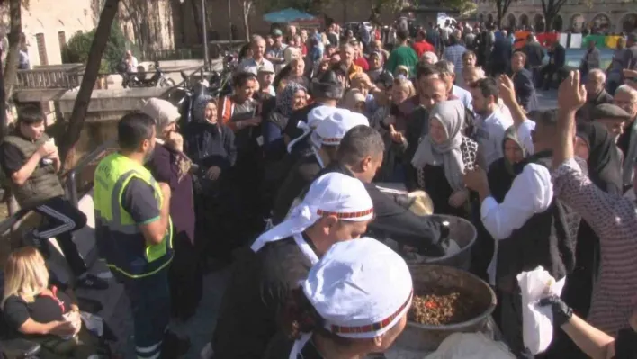 Bursa Ulu Cami'de cuma namazı sonrası dürüm etlerden alabilmek için vatandaşlar neredeyse birbirini ezdi. Yapılan dürüm ikramı sırasında vatandaşlar arasında oluşan izdiham dürüm dağıtanları da zor durumda bıraktı.