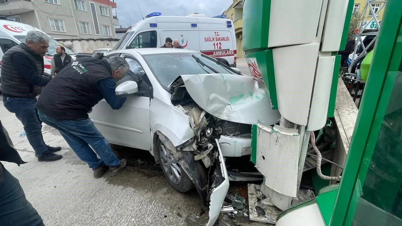 Bursa'nın İznik ilçesinde meydana gelen kazada iki araç benzin istasyonu önünde çarpışırken, 5 kişi de yaralandı.