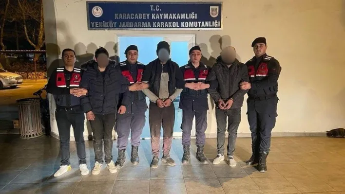 Karacabey İlçesi Bayramdere Mahallesi’nde, eski polis kampı binası içerisinde hırsızlık yaparken jandarma devriyesini görerek kaçan S.A.G. (26), B.A. (29), G.İ. (16) isimli zanlılar yapılan takip sonucu kıskıvrak yakalandı. Üst aramasında B.A isimli şahıstan kuru sıkı tabanca, 15 adet fişek, şarjör ve uyuşturucu içiminde kullanılan payp ele geçirildi. Çevrede yapılan kontrolde şüpheliler tarafından olayda kullanılan, çok sayıda tornavida, anahtar gibi küçük el aletleri ve 100 kilogram bakır kablo ele geçirildi.