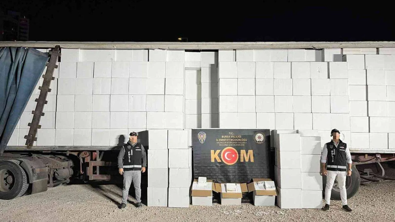 Bursa'da Kaçakçılık ve Organize Suçlarla Mücadele Şube Müdürlüğünce sigara kaçakçılığını önlemek amacıyla operasyon düzenlendi. Operasyonda 15 milyon adet boş makaron ele geçirilirken 5 milyon lira değerindeki tıra el konuldu.