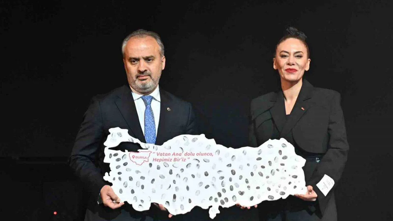 Programın sonunda okunan İstiklal Marşı’na tüm salon büyük bir coşkuyla eşlik ederken, projenin mimarı Ehli Sanat Derneği yöneticisi Eda Sürmeli, etkinlik öncesi fuaye alanında hazırlanan ve tüm kadınların parmak izlerini taşıyan Türkiye Haritası panosunu da Başkan Aktaş’a hediye etti.