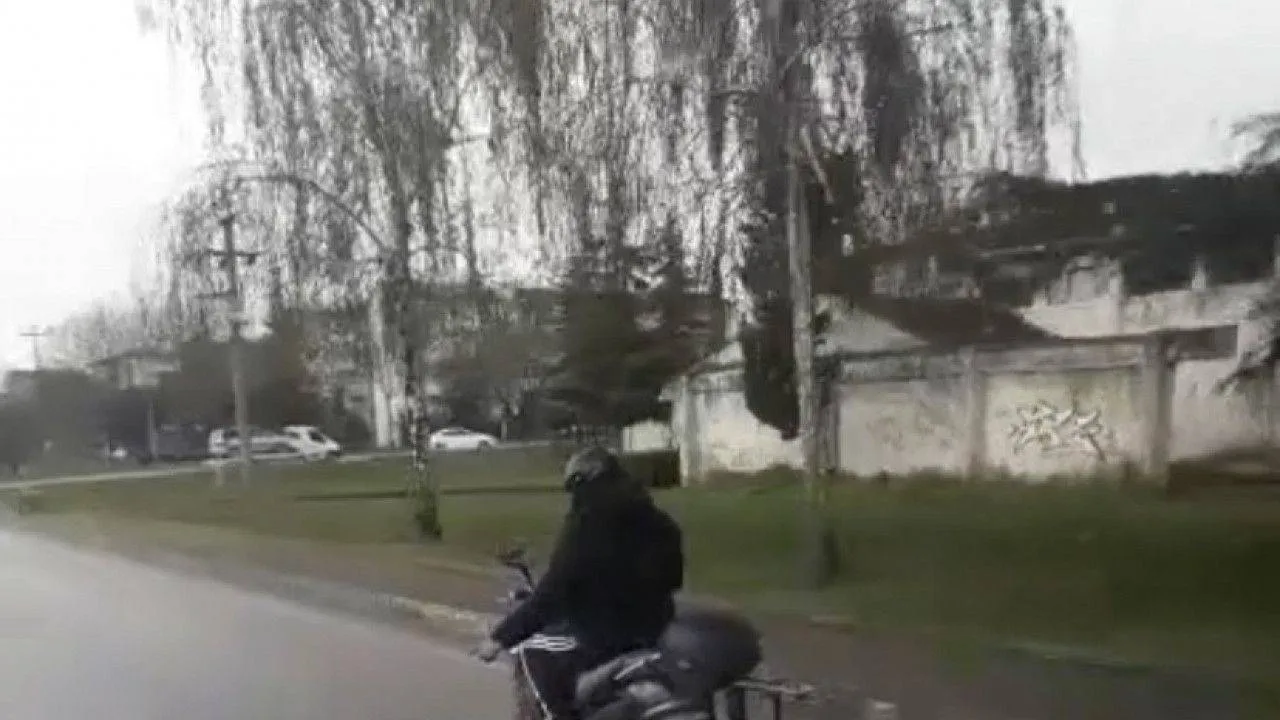 Bursa'da hava yağmurlu olmasına rağmen kendi canını hiçe sayarak motosikletle merdiven taşıyan sürücü kameraya yansıdı.