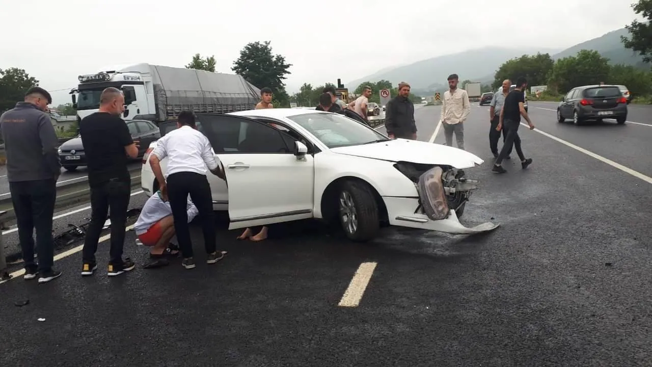 Bursa'nın İnegöl ilçesinde yağış sebebiyle kayganlaşan yolda bariyerlere çarpan otomobildeki 4 kişi yaralandı.