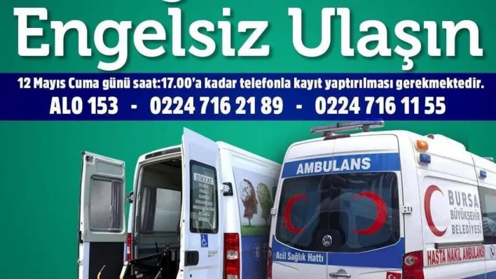 Bu arada engelsiz ulaşım hizmetinden yararlanmak isteyen vatandaşların, 12 Mayıs Cuma günü saat 17.00’a kadar Alo 153 ya da ‘0224 7161155’ ve 0224 7162189 numaralı telefonlardan kayıt yaptırması gerekiyor.