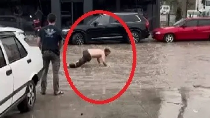 Bursa'nın İnegöl ilçesinde etkili olan sağanak hayatı felç etti. Sokak ve caddeler göle dönerken sosyal medya meraklıları ise sözde balık tutup kulaç attı. Can kaybı yaşanmazken sağanak ve fırtına vatandaşlara zor anlar yaşattı.