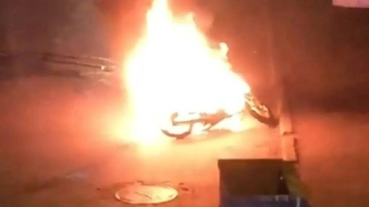 Yangın sonrası motosiklet kullanılamaz hale gelirken o anlar kameralara yansıdı.