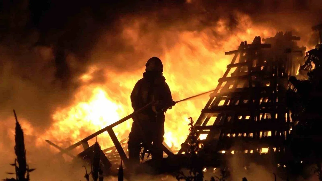 Bursa'da soğuk hava deposunda çıkan yangında alevler geceyi aydınlattı