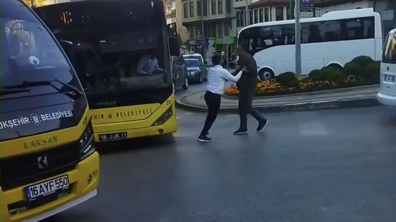 Olay, merkez Osmangazi ilçesi Çekirge Mahallesi’nde meydana geldi. Edinilen bilgiye göre, şehrin en işlek noktalarından biri olan Çekirge Meydanı’nda otobüs ve hafif ticari araç sürücüsü arasında yol verme meselesi yüzünden tartışma çıktı. Tartışma kısa sürede büyürken araç sürücü aracından indi. Bıçakların çekildiği kavga diğer sürücülerin araya girmesiyle son bulurken o anlar çevredeki bir vatandaşın kamerasına yansıdı.