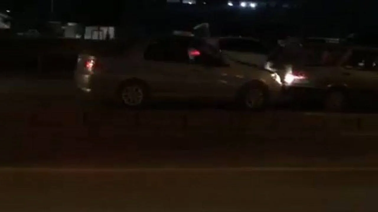 Bursa’da arızalanarak yolda kalan otomobili başka bir otomobille tampon tampona iterek götürdüler. O anlar kameraya yansıdı.