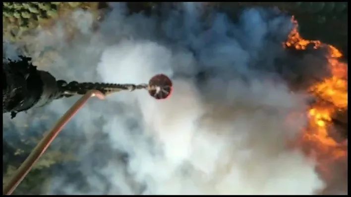 Ormana ait yangın söndürme helikopterlerinin havadan müdahalesi yangının söndürülmesinde önemli rol oynadı. O anlar da helikopter kamerasına yansıdı.