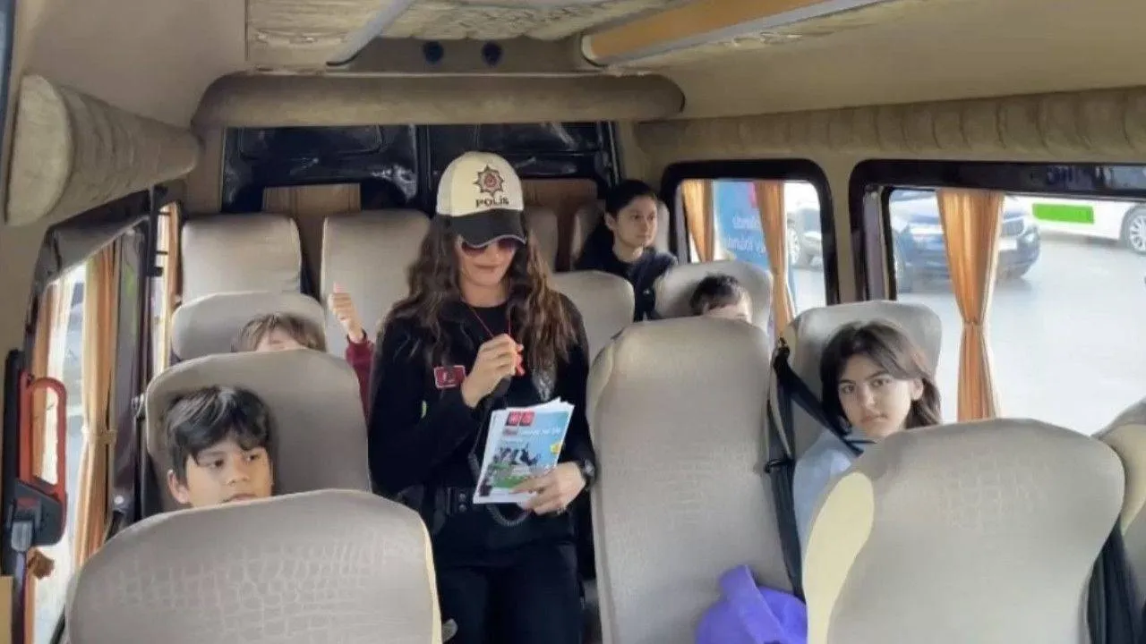 Polis ekipleri inceledikleri servis araçlarında çocuklara, rehber personelin uyarılarını dikkate almalarını, emniyet kemerlerinin takılmalarını, camdan sarkmamaları, ayakta seyahat etmemeleri konularında uyarılarda bulunuldu.