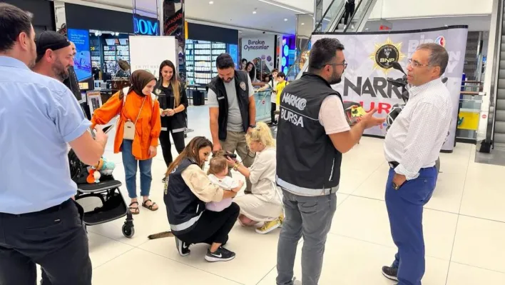Bursa İl Emniyet Müdürlüğü kent merkezinde vatandaşlara uyuşturucaya karşı mücadelede konusunda bilgilendirmede bulunup broşür dağıttı.