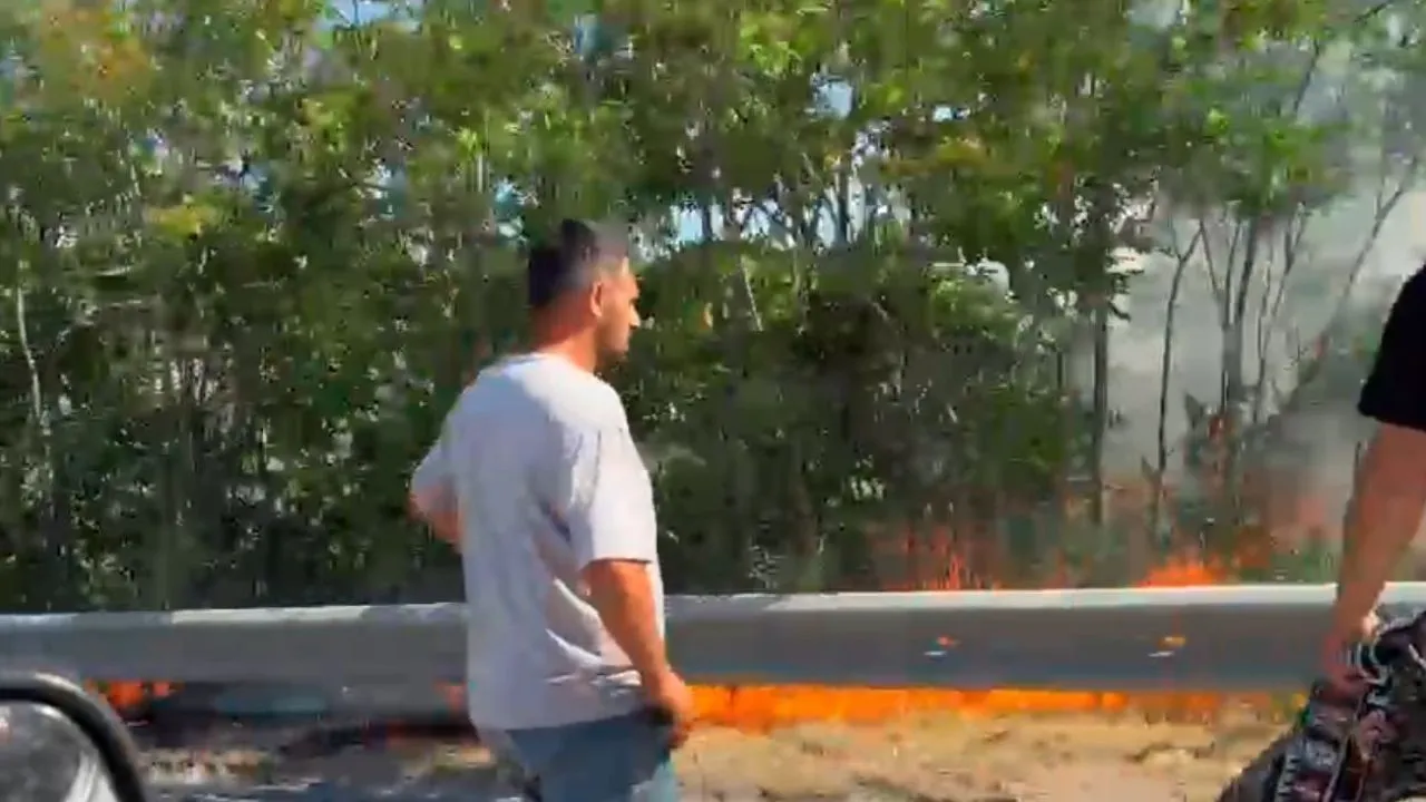 Bursa Şehir Hastanesi’nin karşısında bulunan alanda çıkan yangına yoldan geçen sürücüler, araçlarından çıkardıkları yangın söndürme tüpleriyle müdahale etmeye çalışıyor. Otoyol kenarına çıkan köylü çocuklar, yangına atmak için araçlardan su istiyor.