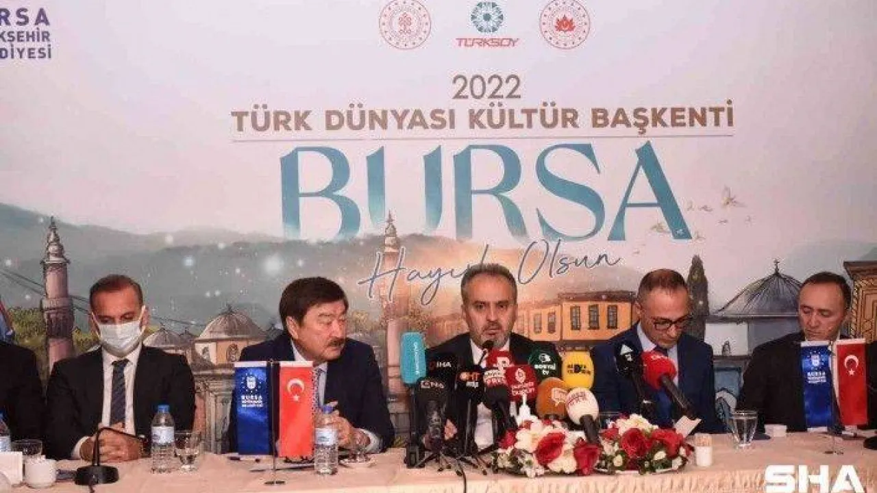 TÜRKSOY tarafından 2020 Türk Dünyası Kültür Başkenti ilân edilen Özbekistan’ın Hiva şehrindeki kutlamaların ardından yapılan 38. dönem toplantısında Bursa, ‘2022 Türk Dünyası Kültür Başkenti olarak ilân edildi. Büyükşehir Belediye Başkanı Alinur Aktaş, süreç ve çalışmalar hakkında kamuoyunu bilgilendirmek amacıyla basın mensuplarıyla buluştu. Tarihî ZindanKapı’daki toplantıya, TÜRKSOY Genel Sekreteri Düsen Kaseinov, Azerbaycan Cumhuriyeti Kültür Bakanlığı İdari İşler Başkanı Akif Marifli, Azerbaycan Cumhuriyeti TÜRKSOY Temsilcisi Elçin Gafarlı, İl Kültür Turizm Müdürü Kamil Özer, belediye bürokratları ve çok sayıda medya kuruluşunun temsilcisi katıldı.